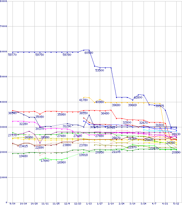 CPU主要製品(最安値1万円~2万円未満)の最安値推移