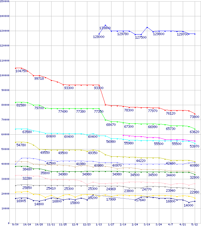 | Socket 939・FSB 1000MHzの最安値推移 | | | (2005年9月30日~2006年5月12日) |