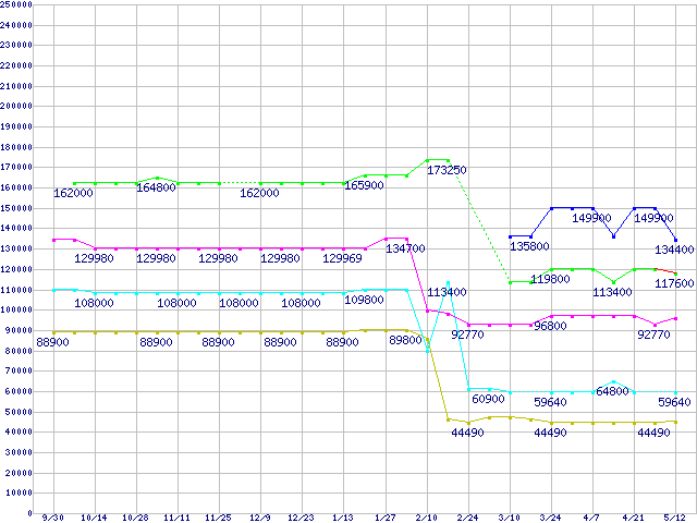 Socket 940・FSB 1000MHzの最安値推移