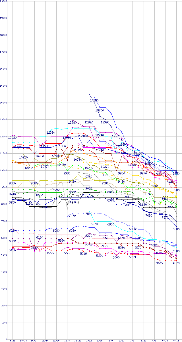 | HDD主要製品(最安値1万円未満)の最安値推移 | | | (2005年9月29日~2006年5月11日) |