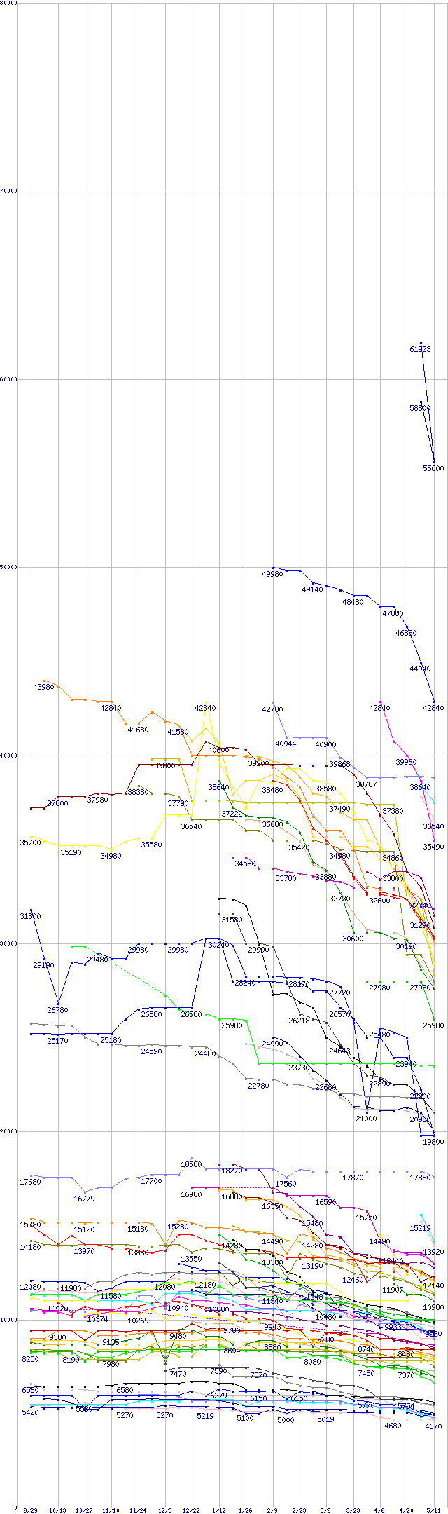 ※製品名をクリックすると個別のグラフを表示します ※点線部は販売店が確認できなかった、または調査データがないことを示します |