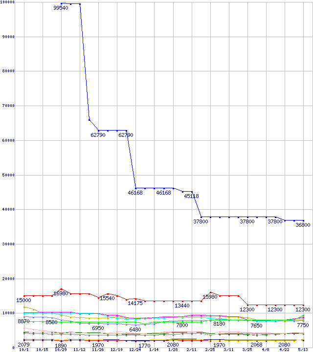 メモリ主要製品の最安値推移