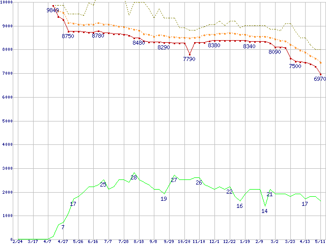 | 6L160P0 (160GB,8MB)の価格推移 | | | (2005年2月24日~2006年5月11日) |