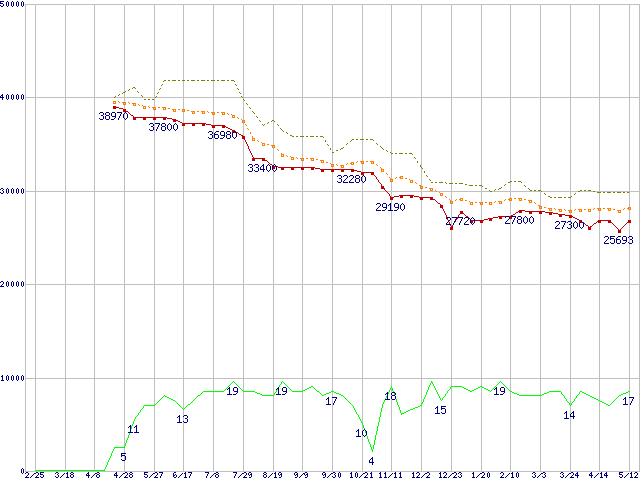 | Athlon 64 3700+ (2.2GHz,L2 1MB)の価格推移 | | | (2005年2月25日~2006年5月12日) |
