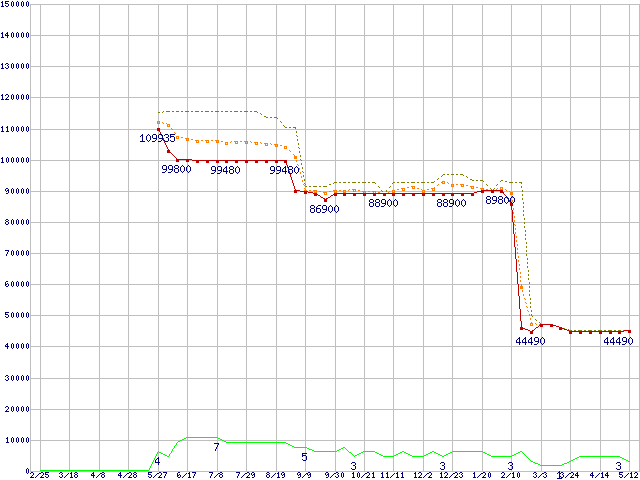 | Opteron 265 (1.8GHz)の価格推移 | | | (2005年2月25日~2006年5月12日) |