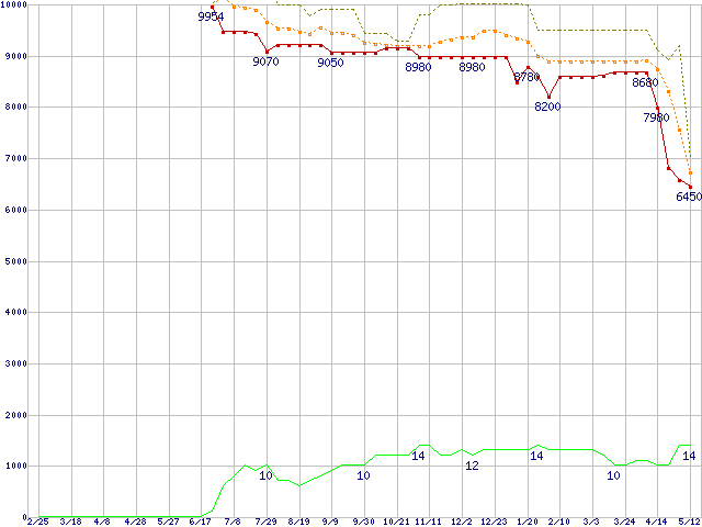 | Celeron D 331 (2.66GHz)の価格推移 | | | (2005年2月25日~2006年5月12日) |