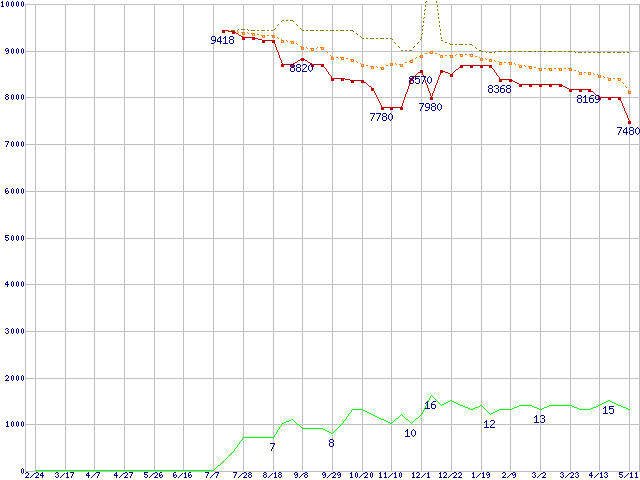 | WD1600JS (160GB)の価格推移 | | | (2005年2月24日~2006年5月11日) |