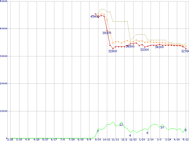 | Turion 64 MT-40 (2.2GHz,1MB) バルクの価格推移 | | | (2005年2月25日~2006年5月12日) |