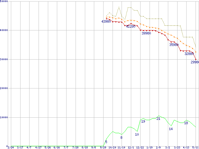 | ST3500641AS (500GB,16MB)の価格推移 | | | (2005年2月24日~2006年5月11日) |