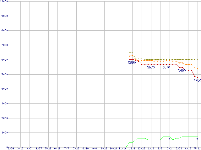 | HDS728040PLA320 (40GB,2MB)の価格推移 | | | (2005年2月24日~2006年5月11日) |