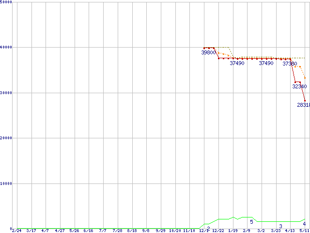 | ST3400632NS (400GB,16MB)の価格推移 | | | (2005年2月24日~2006年5月11日) |