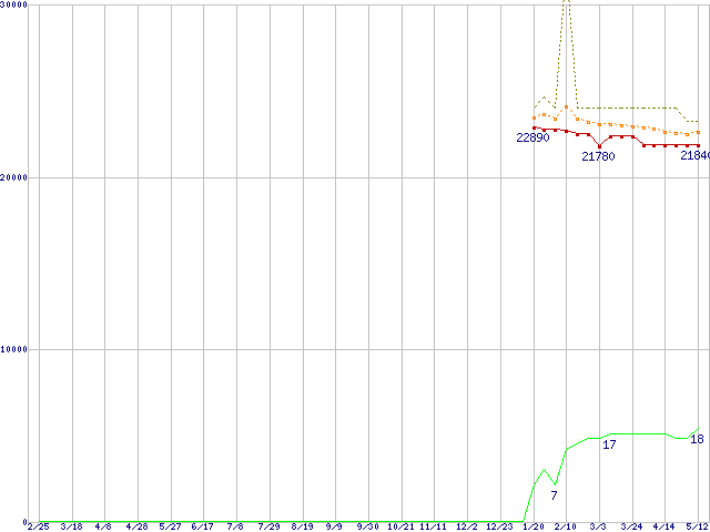 | Pentium 4 631 (3GHz)の価格推移 | | | (2005年2月25日~2006年5月12日) |