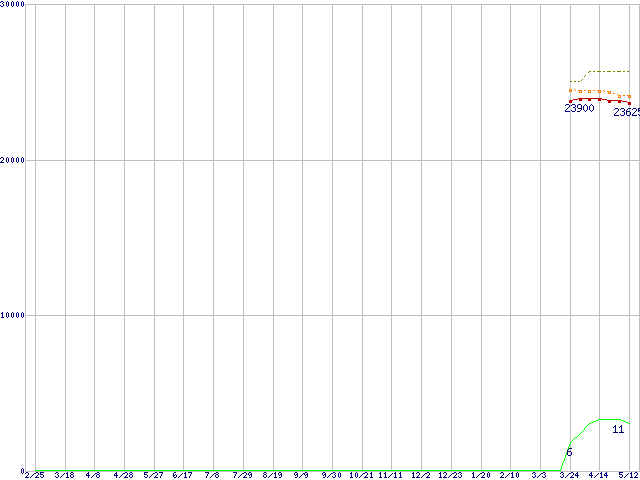 | Turion 64 MT-34 (1.8GHz,1MB)の価格推移 | | | (2005年2月25日~2006年5月12日) |
