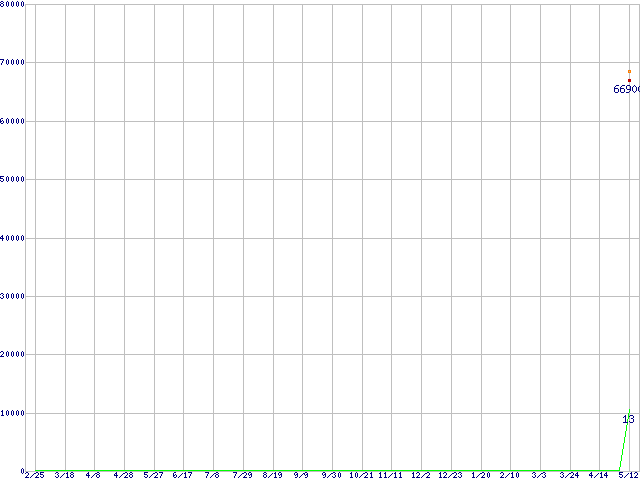 ※このグラフは過去のデータも税率5%相当に調整した税込み相当額のグラフです。 税率変更や、総額表示方式導入(2004年4月)の影響は除いています。 | | | ●凡例 | 最安値 (点線部は販売店未確認 または未調査) | 平均値 | 最高値 | ショップ数 |