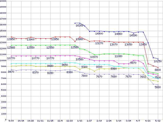 Socket 478 (FSB 533MHz,L2 256KB)の最安値推移