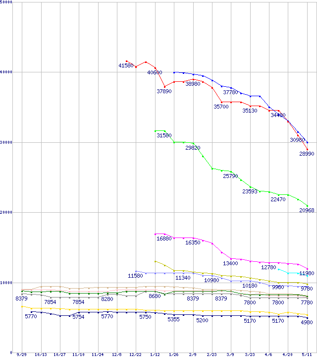 | Barracuda 7200.9 (7200rpm,Ultra ATA/100)の最安値推移 | | | (2005年9月29日~2006年5月11日) |