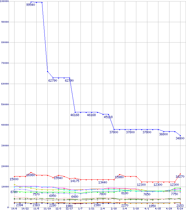 メモリ主要製品の最安値推移