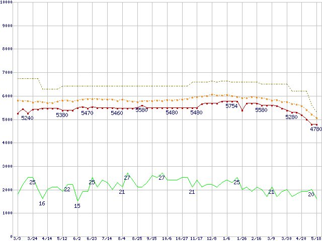 | HDS728080PLAT20 (80GB,2MB)の価格推移 | | | (2005年3月3日~2006年5月18日) |