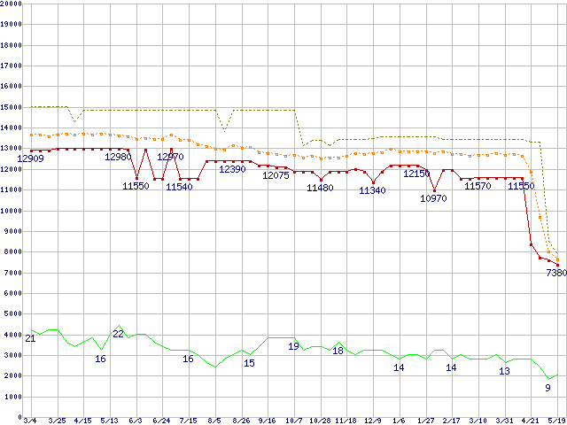 | Celeron D 345 (3.06GHz)の価格推移 | | | (2005年3月4日~2006年5月19日) |