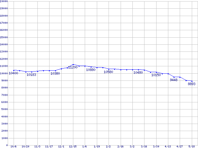 | WD Caviar[Special Edition] (7200rpm,Ultra ATA/100,8MB)の最安値推移 | | | (2005年10月6日~2006年5月18日) |