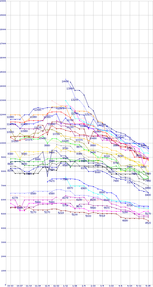 | HDD主要製品(最安値1万円未満)の最安値推移 | | | (2005年10月13日~2006年5月25日) |