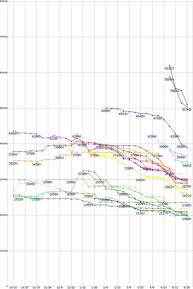| HDD 400GB以上の最安値推移 | | | (2005年10月13日~2006年5月25日) |