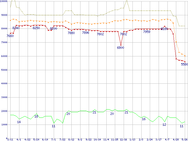 | Celeron D 325 (2.53GHz)の価格推移 | | | (2005年3月11日~2006年5月26日) |