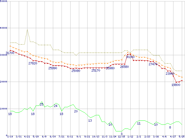 | HDS724040KLAT80 (400GB,8MB)の価格推移 | | | (2005年3月10日~2006年5月25日) |