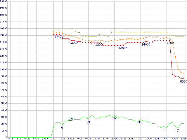 | Celeron D 350 (3.2GHz)の価格推移 | | | (2005年3月11日~2006年5月26日) |