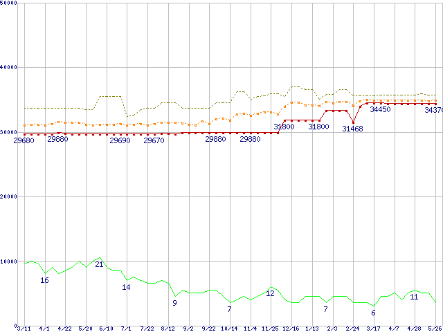 | Pentium 4 3.40E GHzの価格推移 | | | (2005年3月11日~2006年5月26日) |
