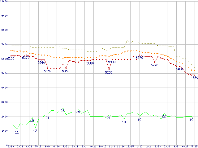 | HDS728080PLA380 (80GB,8MB)の価格推移 | | | (2005年3月10日~2006年5月25日) |