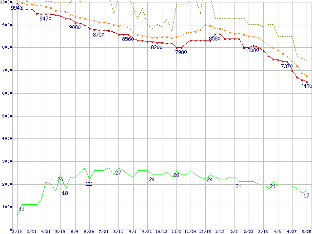 | HDT722516DLAT80 (160GB,8MB)の価格推移 | | | (2005年3月10日~2006年5月25日) |