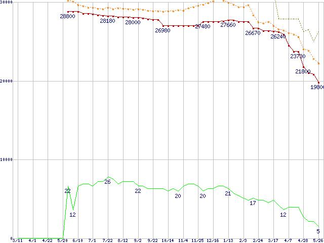 | Pentium D 820 (2.80GHz)の価格推移 | | | (2005年3月11日~2006年5月26日) |