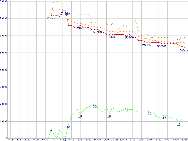 | Athlon 64 X2 4400+ (2.2GHz,L2 1MB×2,Socket 939)の価格推移 | | | (2005年3月11日~2006年5月26日) |
