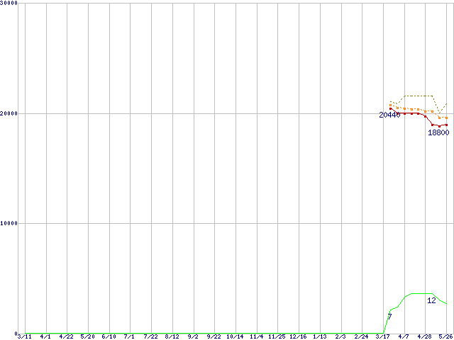 | Turion 64 MT-32 (1.8GHz,512KB)の価格推移 | | | (2005年3月11日~2006年5月26日) |