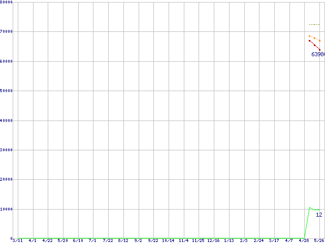 ※このグラフは過去のデータも税率5%相当に調整した税込み相当額のグラフです。 税率変更や、総額表示方式導入(2004年4月)の影響は除いています。 | | | ●凡例 | 最安値 (点線部は販売店未確認 または未調査) | 平均値 | 最高値 | ショップ数 |