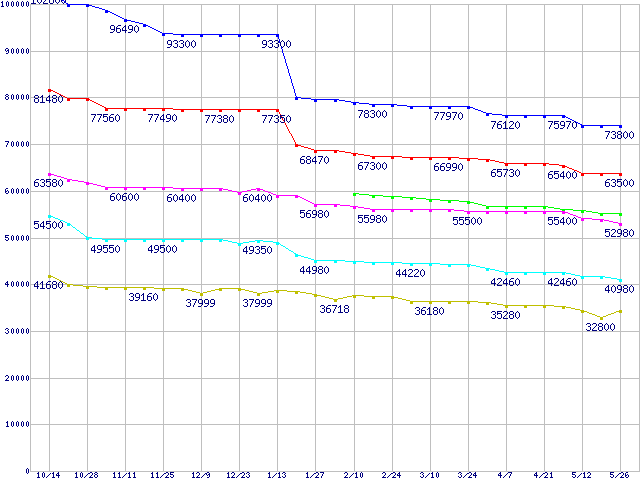 | Socket 939 (FSB 1000MHz,Dual Core)の最安値推移 | | | (2005年10月14日~2006年5月26日) |