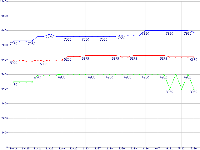 Socket A (FSB 266MHz,L2 256KB)の最安値推移