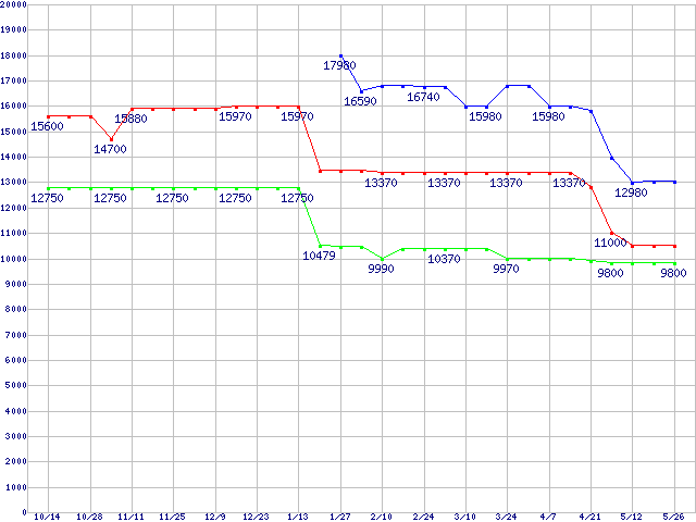 mPGA479M (FSB 400MHz,L2 1MB)の最安値推移