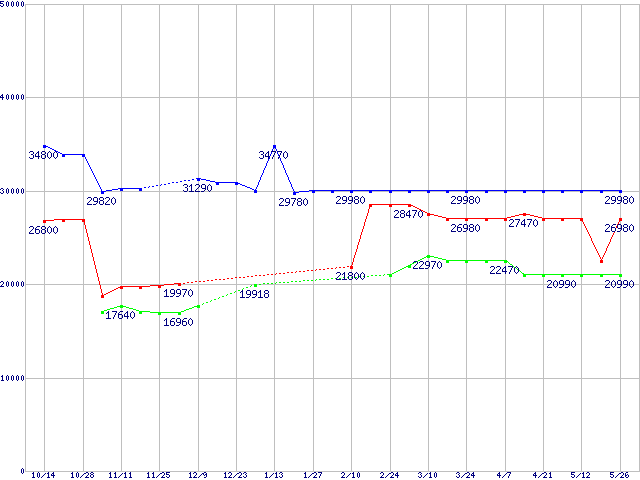 Socket 940 (FSB 1000MHz,L2 1MB)の最安値推移