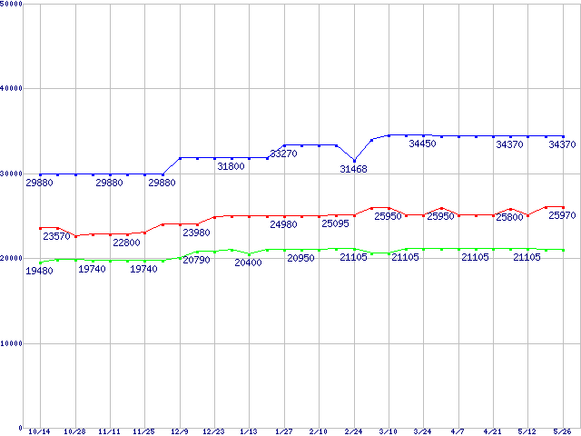 | Socket 478 (FSB 800MHz,L2 1MB,Hyper-Threading)の最安値推移 | | | (2005年10月14日~2006年5月26日) |