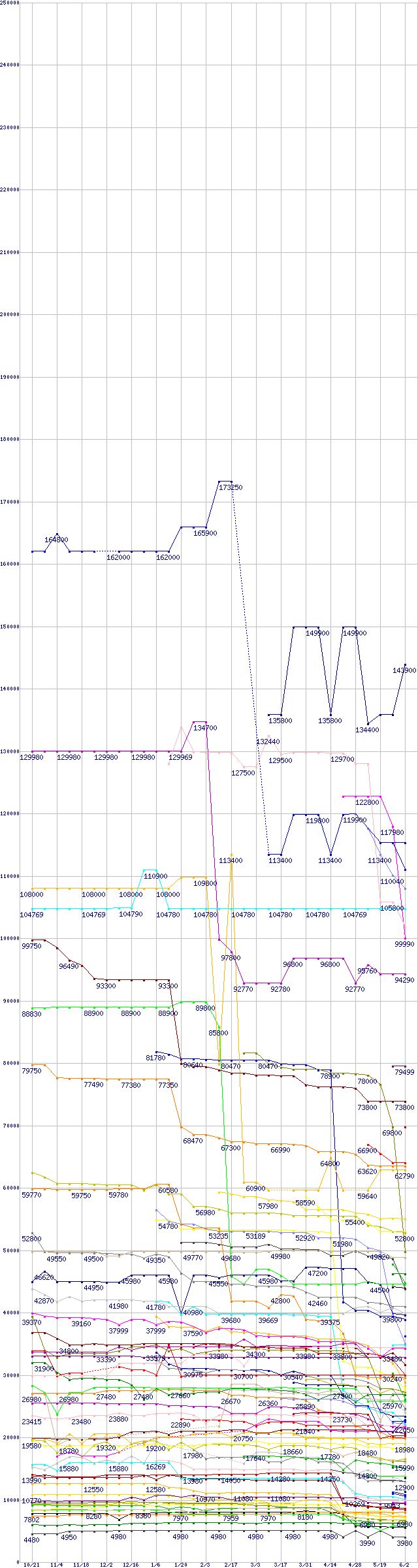 ※製品名をクリックすると個別のグラフを表示します ※点線部は販売店が確認できなかった、または調査データがないことを示します |