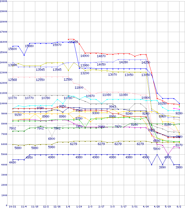 CPU主要製品の最安値推移