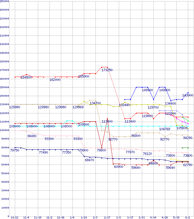 CPU主要製品(最安値6万円以上)の最安値推移