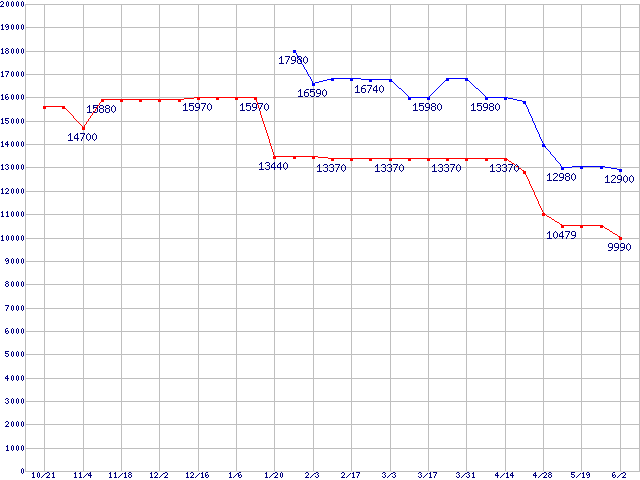 mPGA 479M・FSB 533MHzの最安値推移