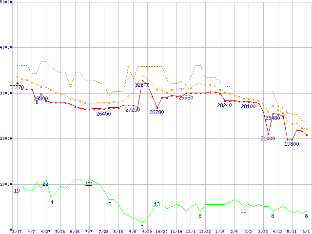 | HDS724040KLSA80 (400GB,8MB)の価格推移 | | | (2005年3月17日~2006年6月1日) |