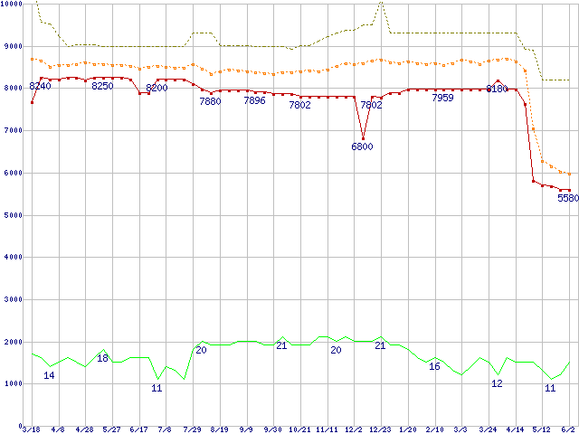 | Celeron D 325 (2.53GHz)の価格推移 | | | (2005年3月18日~2006年6月2日) |