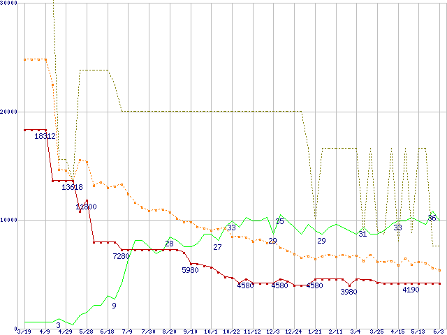 メモリ主要製品の最安値推移