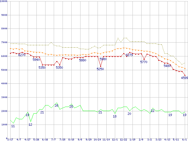 | HDS728080PLA380 (80GB,8MB)の価格推移 | | | (2005年3月17日~2006年6月1日) |