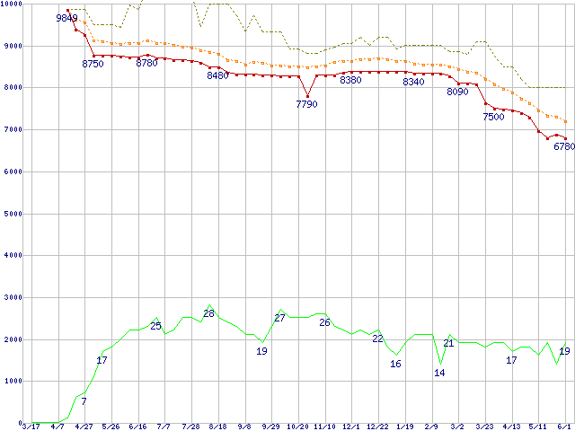 | 6L160P0 (160GB,8MB)の価格推移 | | | (2005年3月17日~2006年6月1日) |
